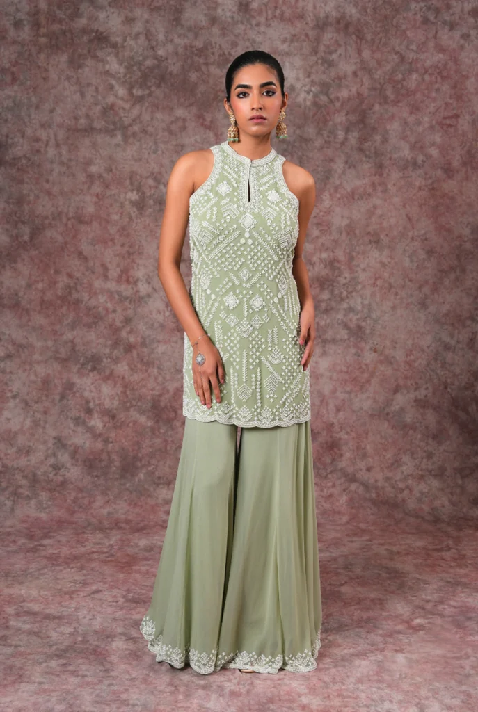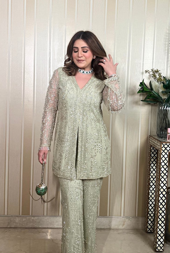Swetta S Nanda’s creations are crafted not to follow trends, but to transcend them. Her signature crystal technique, adorned with mother-of-pearl, fine beads, and delicate threadwork, lends each piece a distinctive richness in texture and form. With every season, the label unveils an ingenious array of ensembles — reflections of soft yet striking dressing that celebrate the beauty of subtle statement-making.